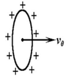 19.如图,带正电的金属圆环竖直放置,绕过圆心的中心轴匀速转动(从右向左看为顺时针方向,不考虑辐射电磁波),其中心处有一质子,若质子(重力不计)某一时刻以初速v0从圆环中心处水平向右运动,则此后质子将( )