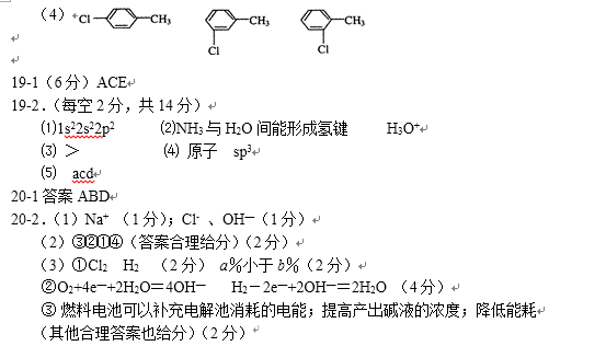 (4)写出E的属于芳香烃衍生物的同分异构体的结构简式: ( ) 、 ( ) 。《物质结构与性质》19-1.(6分,该题为多项选择题,全选对得6分,漏选按比例给分,错选或多选为0分)