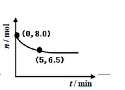 在10L密闭容器中,根据图示,NO在5min内变化物质的量8.0mol-6.5mol=1.5mol,NO在催化剂作用下分解为氮气和氧气,2NO=O2+N2,生成氧气物质的量0.75mol,则0~5min内氧气的平均反应速率