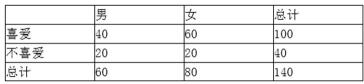 周立波是海派清口创始人和《壹周·立波秀》节目的主持人,他的点评视角独特,语言幽默犀利,给观众留下了深刻的印象.某机构为了了解观众对《壹周·立波秀》节目的喜爱程度,随机调查了观看了该节目的140名观众,得到如下的列联表:(单位:名)