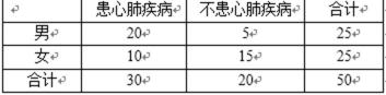 18. 近年空气质量逐步恶化,雾霾天气现象出现增多,大气污染危害加重.大气污染可引起心悸、呼吸困难等心肺疾病.为了解某市心肺疾病是否与性别有关,在某医院随机对入院的50人进行了问卷调查得到了如下的列联表: