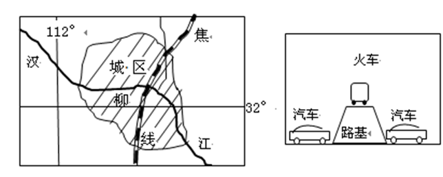 7.下图是我国某城市分布图。该城市有2000多年的历史,被誉为“南船北马,七省通衢”。建于上世纪六、七十年代的焦柳铁路线,穿过该城市多采用高路基或公路涵洞的方式。在当时条件下,铁路线穿过城区设计成高路基或公路涵洞的形式,考虑的主要因素可能为()