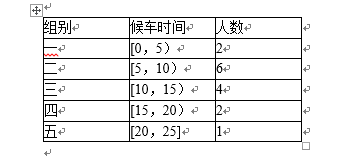 城市公交车的数量太多容易造成资源的浪费,太少又难以满足乘客需求,为此,某市公交公司在某站台的60名候车乘客中随机抽取15人,将他们的候车时间作为样本分成5组,如下表所示(单位:min):