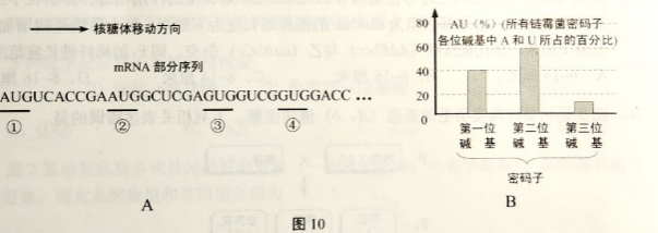 30.大量研究发现,很多生物密码子中的碱基组成具有显著地特异性。图10 A所示的链霉菌某一mRNA的部分序列整体大致符合图10 B所示的链霉菌密码子碱基组成规律,试根据这一规律判断这段mRNA序列中的翻译起始密码子(AUG或GUG)可能是