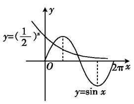 由图可知,2个函数图像有3个交点。A选项不正确,B选项不正确,D选项不正确,所以选C选项。