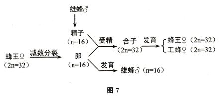 蜜蜂种群由蜂王、工蜂和雄蜂组成,图7显示了蜜蜂的性别决定过程,据图判断,蜜蜂的性别取决于