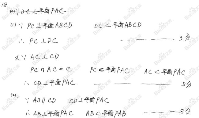 18.如图,在四棱锥P-ABCD中,PC⊥平面ABCD,