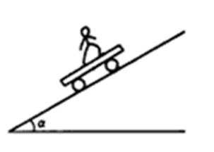9.如图所示,质量为M的长平板车放在光滑的倾角为α的斜面上,车上站着一质量为m的人,若要平板车静止在斜面上,车上的人应当( )