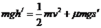 (2)若滑块从h/=5m处下滑到将要与小球碰撞时速度为u,同理有