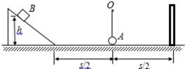 21.一轻质细绳一端系一质量为m=0.05kg的小球A,另一端挂在光滑水平轴O上,O到小球的距离为L=0.1m,小球跟水平面接触,但无相互作用,在球的两侧等距离处分别固定一个光滑的斜面和一个挡板,如图所示,水平距离s=2m,动摩擦因数为μ=0.25。现有一滑块B,质量也为m,从斜面上滑下,与小球发生弹性正碰,与挡板碰撞时不损失机械能.若不计空气阻力,并将滑块和小球都视为质点,g取10m/s2。