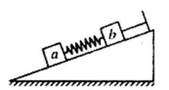 14. 如图所示,将两个相同的木块a、b置于固定在水平面上的粗糙斜面上,a、b中间用一轻弹簧连接,b的右端用平行于斜面的细绳与固定在斜面上的挡板相连。开始时a、b均静止,弹簧处于压缩状态,细绳上有拉力,下列说法正确的是( )