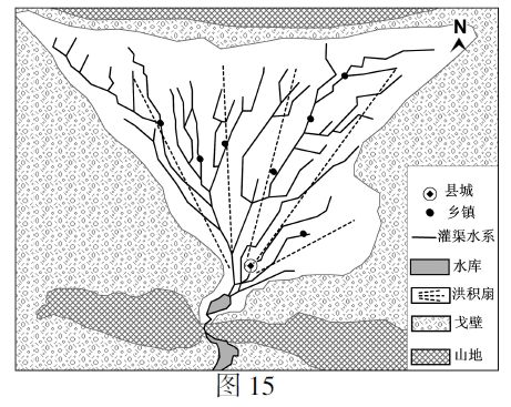 图示为我们某绿洲示意图,该区域位于我国西北内陆,气候干旱,水源缺乏,该区域修建水库的主要目的是调节径流的季节变化,保障城镇用水和农田灌溉用水,故答案选A、C。