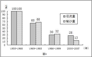 7. 图3为1950-2007年黄河入海口附近的利津水文站径流量与输沙量变化图。读图推断该水文站河水含沙量变化的主要原因是( )