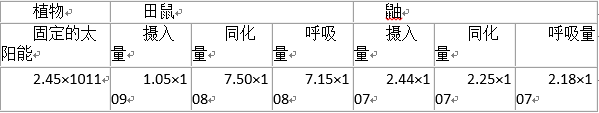 某弃耕地的主要食物链由植物→田鼠→鼬构成。生态学家对此食物链能量流动进行了研究,结果如下表,单位是(J/hm2·a)