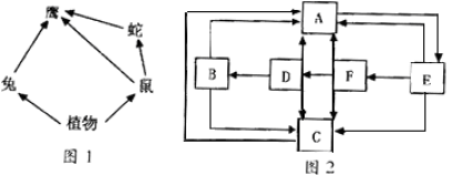 (2)图2中表示生态系统基石的字母是( ),能构成群落的是 ( ),若因环境污染造成生产者锐减,则对F、D数量的影响是 ( )。碳在生物群落内以 ( ) 的形式进行流动。