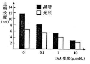 27.某课题组研究了光和IAA溶液对水稻幼苗主根生长的影响,结果如下图所示。