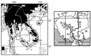 材料三 下图为东南亚局部图,该地为热带季风气候,全年高温,有明显的旱、雨两季(5—10月为雨季、11月至次年4月为旱季)。50年不遇的洪水再次提醒泰国发展经济重视水利建设的重要性。