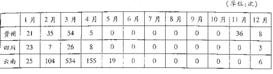 表3为2007年气象卫星监测的我国西南三省林区火灾次数统计表