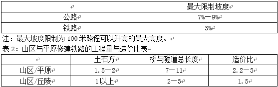 山区修建铁路比修建公路限制较大、成本高、难度大。