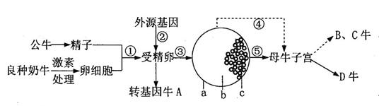 根据培育优良种牛的过程图解(其中①~⑤表示操作过程)回答下列问题: