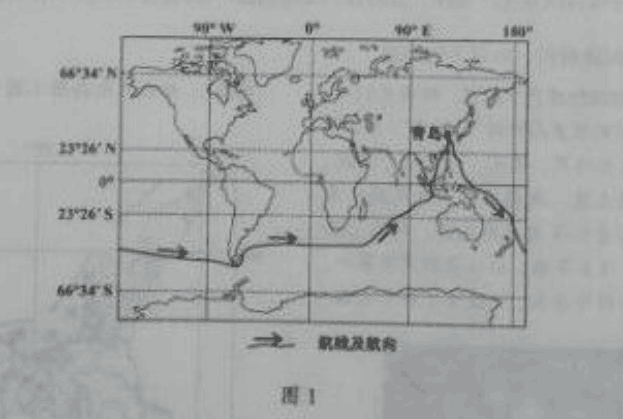 2013年4月5日,我国帆船物驾驶“青岛号”帆船荣归青岛港,实现了中国人民首次单人不间断环球航行。图1为此次航行的航线图,据材料回答下列各题。
