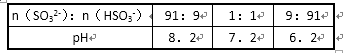 Ⅰ.利用钠碱循环法可脱除烟气中SO2,该法用Na2SO3溶液作为吸收剂,吸收过程pH随n(SO32-):n(HSO3-)变化关系如下表: