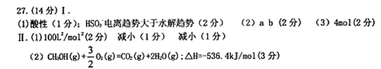 27.(1)含有弱酸HA和其钠盐NaA的混合溶液,在化学上用作缓冲溶液。向其中加入少量酸或碱时,溶液的酸碱性变化不大。现将0.04mol·L-1HA溶液和0.02mol·L-1NaOH溶液等体积混合,得到缓冲溶液。