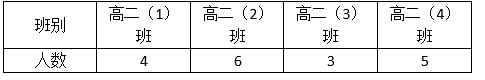 某校从高二年级4个班中选出18名学生参加全国数学联赛,学生来源人数如下表: