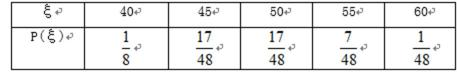 (2) ξ可能的取值为40,45,50,55,60………………………………5分