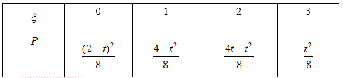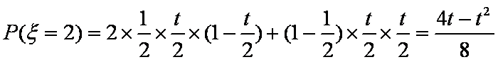 现有甲、乙、丙三人参加某电视台的应聘节目非你莫属,若甲应聘成功的概率为 ,乙、丙应聘成功的概率均为(0<t<2),且三个人是否应聘成功是相互独立的。