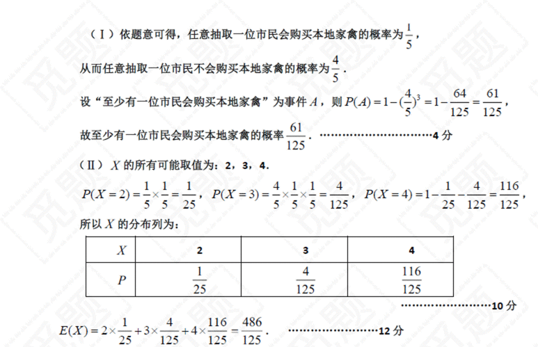 (ii)也可将(2)中所求的EX改写为