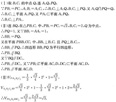 19.如图,正三棱锥ABC—A1B1C1中,AB=2,AA1=1,D是BC的中点,点P在平面BCC1B1内,PB1=PC1=2。