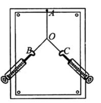 16.“验证力的平行四边形定则”的实验情况如图所示,其中A为固定橡皮筋的图钉,O为橡皮筋条与细绳的结点,OB和OC为细绳。实验前发现两弹簧秤的刻度清晰,但所标数字模糊不清。实验中用两个弹簧秤拉橡皮条时,两弹簧秤上指针分别指在第30小格和第40小格的刻线上,当只用一个弹簧秤单独拉橡皮条时,拉力方向沿OD方向,弹簧秤指针指在第51小格上。由此可知(1)用两弹簧秤拉时,两根细线的夹角大约为__________;(2)只用一根弹簧秤拉时,AO和OD____(填“在”或“不在”一条直线上。