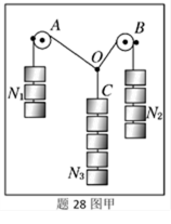 ④在秤钩上涂抹少许润滑油,将橡皮筋搭在秤钩上,如图乙所示。用两圆珠笔尖成适当角度同时拉橡皮筋的两端,使秤钩的下端达到O点,将两笔尖的位置记为A、B,橡皮筋OA段的拉力记为FOA, OB段的拉力记为FOB。