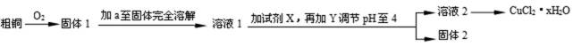 在溶液2转化为CuCl2·xH2O的操作过程中,发现溶液颜色由蓝色变为绿色。在氯化铜溶液中有如下转化关系: