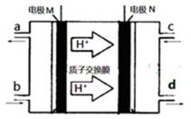 由氢离子的移动方向可知,M区为负极,发生失电子的氧化反应;