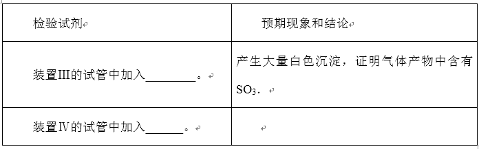 (2)装置Ⅲ和装置Ⅳ的作用是探究本实验气体产物成分.请完成实验设计,填写检验试剂、预期现象与结论.限选试剂:3mol•L-1 H2SO4、6mol•L-1 NaOH、0.5mol•L-1 BaCl2、0.5mol•L-1 Ba(NO3)2、0.01mol•L-1酸性KMnO4溶液、0.01mol•L-1溴水.