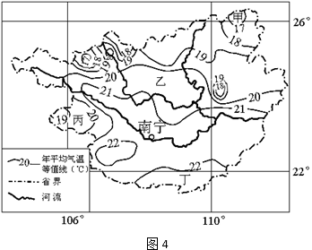11.我国近年来积极采取包括发展新能源在内的措施应对全球气候变化。木薯是喜高温,不而霜雪作物,也是生物质能源燃料乙醇(新能源)的重要原料。每生产燃料乙醇1吨需要消耗鲜水薯约7.5吨。图4是某省级行政区年均温分布图,读图4和材料分析,该区域河流的主要补给是( )