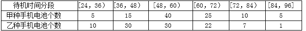 (1)估计甲品牌手机的电池充满电后的待机时间小于48小时的概率;