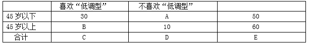 (3)A=20,B=50,C=80,D=30,E=110,H0:假设是否喜欢“低调型”手机与消费者的年龄无关,根据列联表可得: