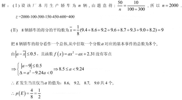 (Ⅱ)用随机抽样的方法从B类舒适型轿车中抽取8辆, 经检测它们的得分如下: 9.4, 8.6, 9.2, 9.6, 8.7, 9.3, 9.0, 8.2. 把这8辆轿车的得分看作一个总体, 从中任取一个分数