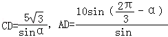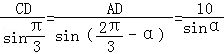 又AB=BC=CA=10,△ACD中,