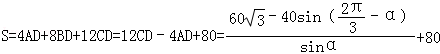 (1)写出S关于α的函数表达式,并指出α的取值范围;