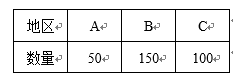 海关对同时从A,B,C三个不同地区进口的某种商品进行抽样检测,从各地区进口此种商品的数量(单位:件)如右表所示. 工作人员用分层抽样的方法从这些商品中共抽取6件样品进行检测.