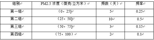 PM2.5的24小时平均浓度在(75,100)内的两天记为