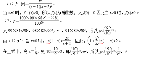 (2)从编号1到100的100张卡片中每次随机抽取一张,然后放回,用这种方式连续抽取20次,设抽得的20个号码互不相同的概率为p,证明: