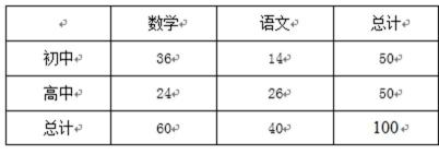 18.某校为了解学生的学科学习兴趣,对初高中学生做了一个喜欢数学和喜欢语文的抽样调查,随机抽取了