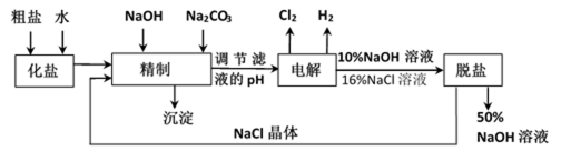 氯碱厂电解饱和食盐水制取NaOH的工艺流程示意图如下: