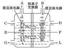 (3)图是工业上电解饱和食盐水的离子交换膜电解槽示意图(阳极用金属钛网制成,阴极由碳钢网制成)。则B处产生的气体是( ),E电极的名称是( )。电解总反应的离子方程式为( )。