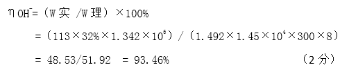 (5)已知在电解槽中,每小时通过1安培的直流电可以产生1.492g的烧碱,某工厂用300个电解槽串联生产8小时,制得32%的烧碱溶液(密度为1.342吨/m3)113m3,电解槽的电流强度1.45 ×104A,该电解槽的电解效率为( ) 。